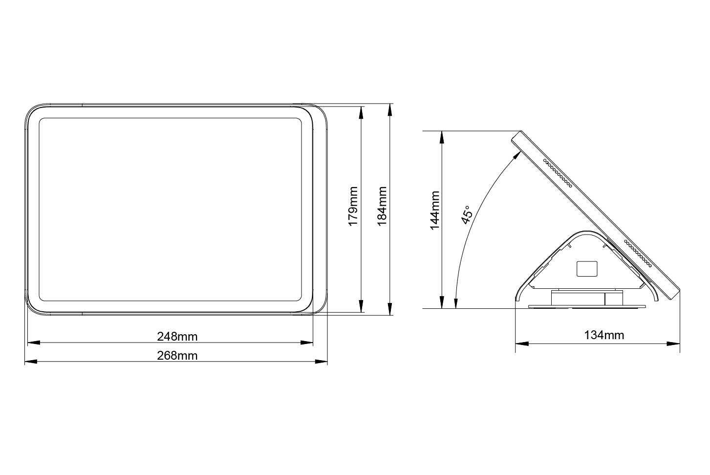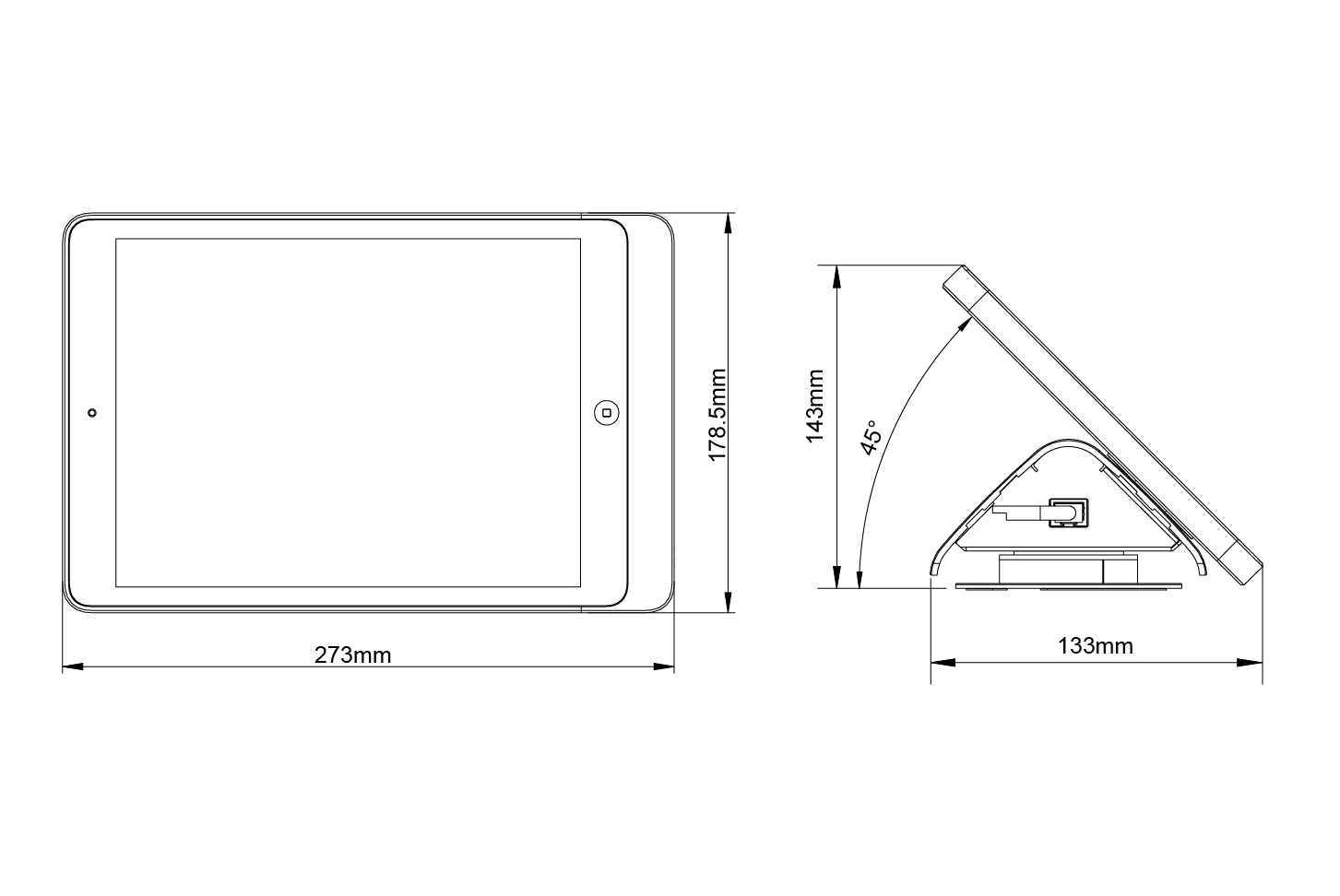 台式45°旋转底座,为桌面iPad支架提供轻巧旋转功能。底座提供45°的可视角度,观看屏幕和操作都极其友好,使访客登记、信息查询和场景设备控制都更为方便。产品尺寸160×116×63mm,可以内置PE-23PD PoE适配器。